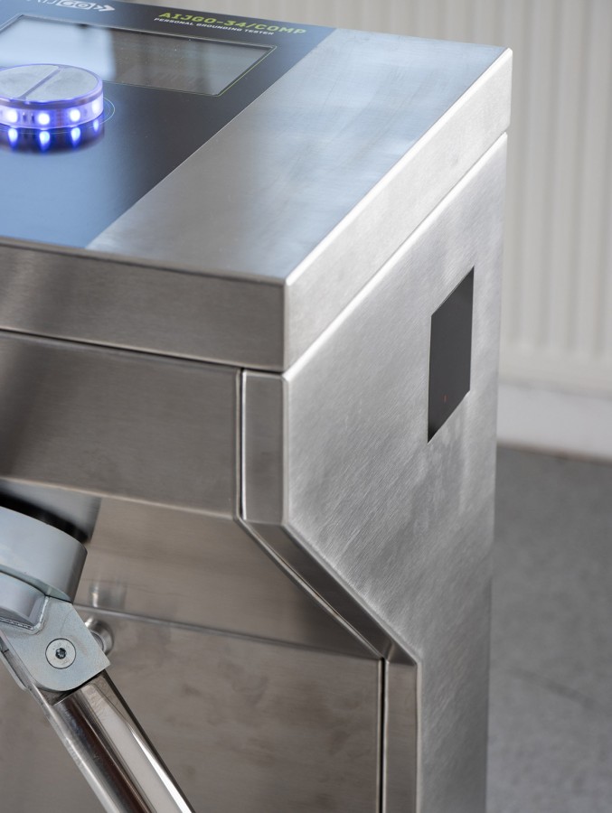 The AIJGO-34/COMP is a tester for checking personal grounding before entering an ESD protected area (EPA). It may be a good choice if you want to identify persons entering the site. Tester with LIGHT BAR system – such AIJGO products have a steel touch button, the measured results are indicated by LED lights. Type with COMPLEX system – these testers are supplied built-in in an entrance gate with turnstile. COMFORT system product – such AIJGO devices have touch button and RFID reader, an RFID card is required for use. The card can be associated with the test type to be used: 1. Footwear system test 2. Wrist strap/groundable ESD smock system test 3. Footwear system and wrist strap/groundable ESD smock system combined test 4. VIP test.