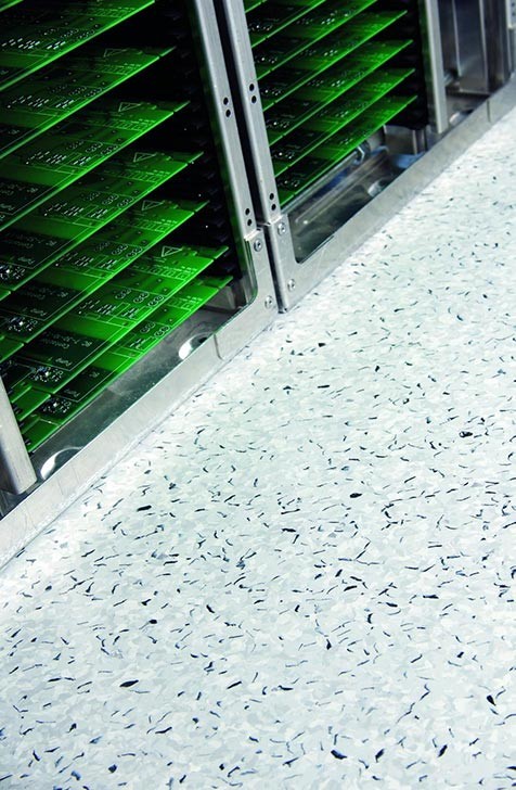 Conductive floor covering Rg = 104 - 106 Ohm, optimal ESD protection for electronic devices, good resistance to chemicals, does not require polishing and waxing.