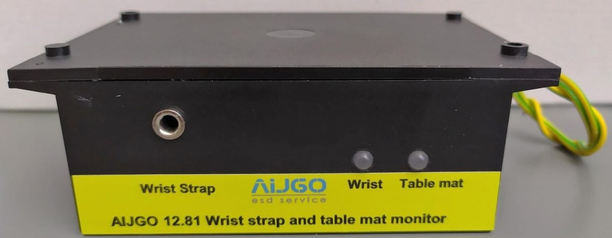 Csuklópánt monitor az ESD területen való munkavégzéshez, csuklópánt és az ESD védett munkahely (asztalborítás) folyamatos méréséhez, fény - és hangjelzés a teszteredmény mutatáshoz, 1 csuklópánttal használható, ellenállás határok: Piros < 100KΩ < Zöld < 30MΩ < Piros, Tesztfeszültség: 5 V.