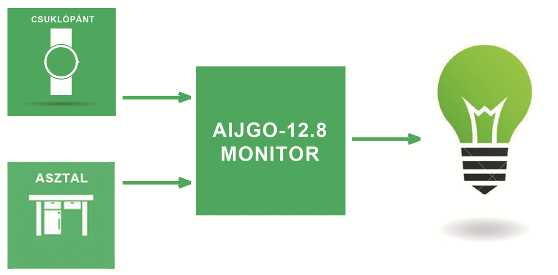 A monitorhoz kapcsolt lámpa csak abban az esetben világít ha munkafelület megfelel a méréseknek és ha a csuklópánt csatlakoztatva van a monitorhoz! Ebben az esetben jelentős energia megtakarítás érhető el a munkaállomáson!