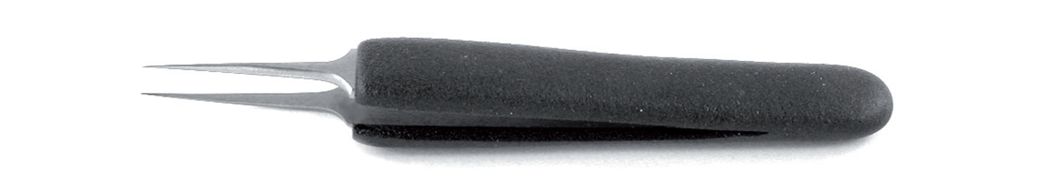 Anti-magnetic precision tweezers with soft ESD ergonomic foam grips (Rs=105-106 Ohm) for an enhanced operator comfort.