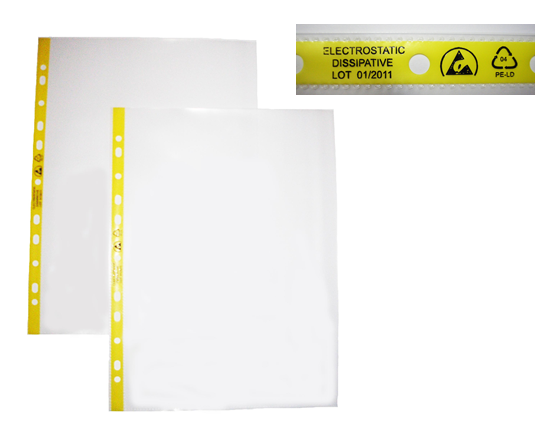 | Description: | Static dissipative polyethylene film, recyclable, Lot Nr. 11-hole for ring binders |