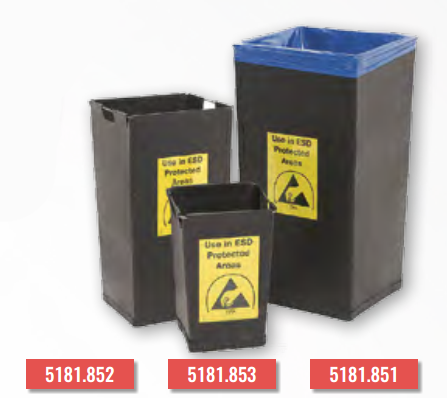 Conductive plastic with ESD and recycling symbol. Complies with DIN EN 61340-5-1 standard