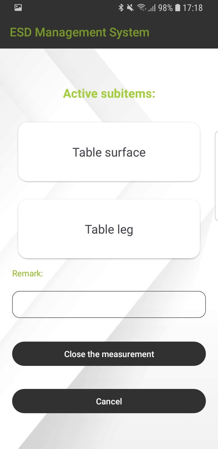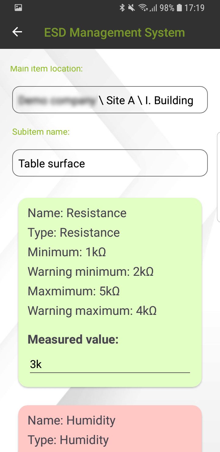 - You can define and choose for which part of an item you want to record ESD measurement data with the help of the ESD Wise Android smart device application.