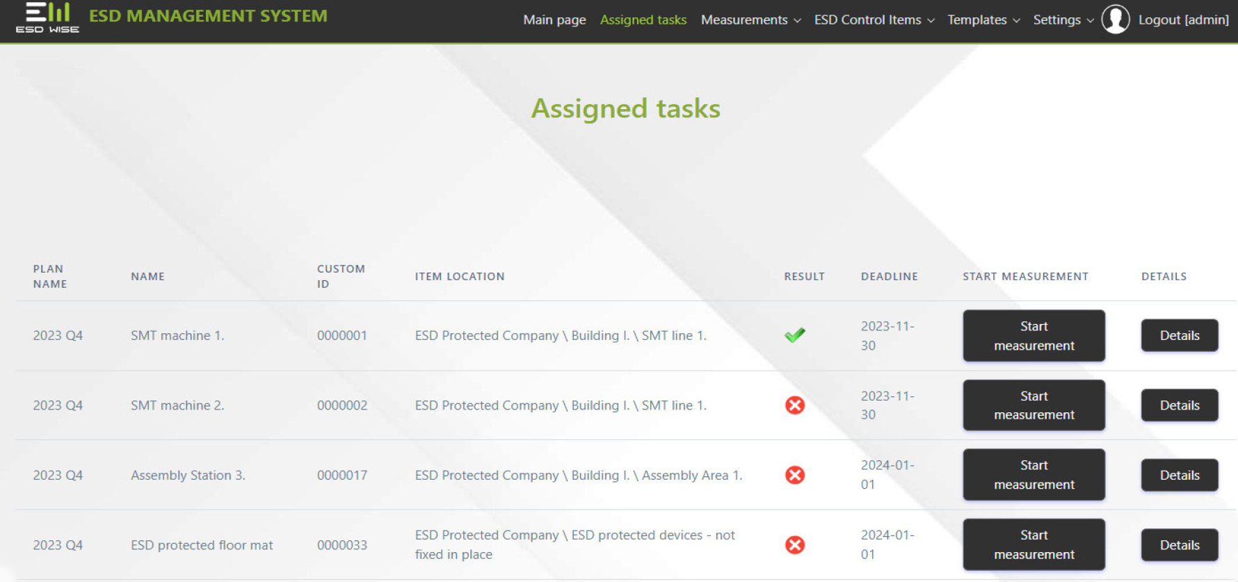 - You can use the ESD Wise software to manage your ESD areas, devices, items and measurements.