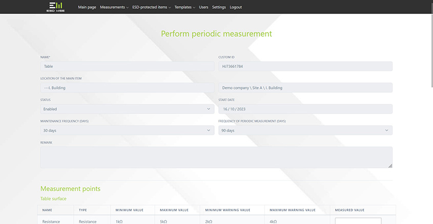 - Change in standard or customer requirements? In the ESD Wise system accepted measurement values can be changed at system level