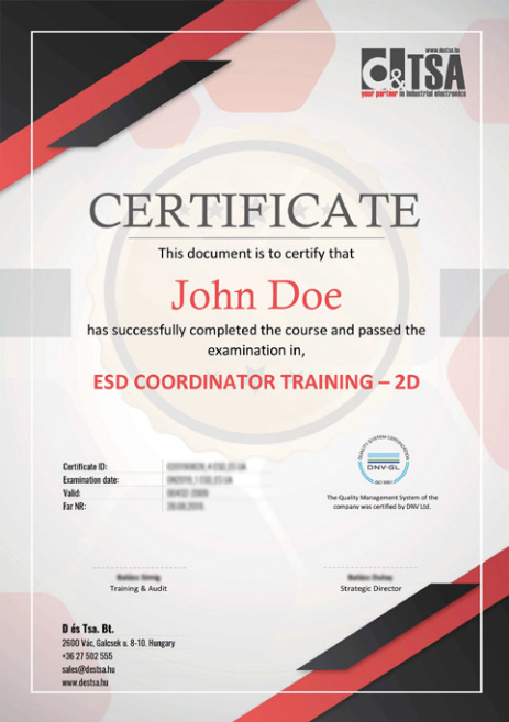 Tananyagunk tartalmazza az ESD-jelenségekkel kapcsolatos alapvető ismereteket és a jól működő ESD-védelem kialakításához és fenntartásához szükséges információkat. A tartalom igazodik az IEC 61340-5-1 és az ANSI/ESD S20.20 szabványokban meghatározott eljárásokhoz és határértékekhez.Az oktatás sikeres elvégzéséről tanúsítványt is kaphatsz, amennyiben a “Komplex ESD képzési csomag tanúsítvány lehetőségével” opciót választottad, és sikeresen vizsgázol.
