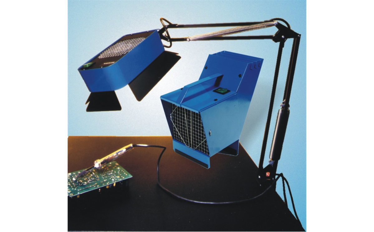 The GOSMOKE exhauster is a convenient and economical solution to the fumes associated with soft soldering. Fumes close to the worker are drawn in, filtered and direct towards the ceiling where supplementary ventilation can be eventually provided. There are two models, both of them are equipped with an axial fan and a cellular activated filter, which filters out some of the colophony, tin and lead vapours contained in the fumes. The filter should be replaced every 100 working hours.