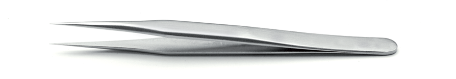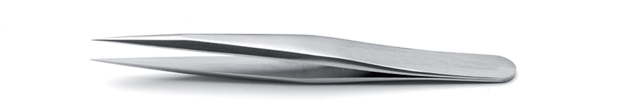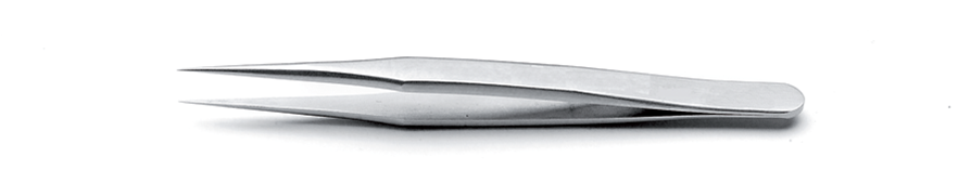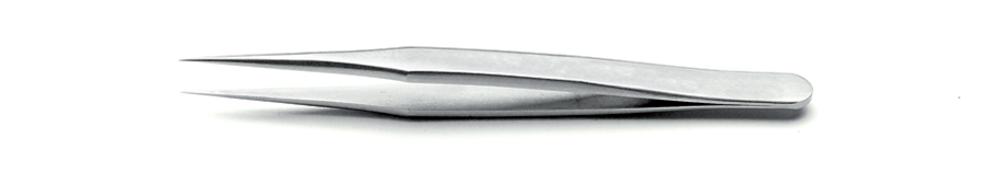 Short tweezers without the excess bulk of long tweezers. Made of anti-acid/anti-magnetic stainless steel (SA).