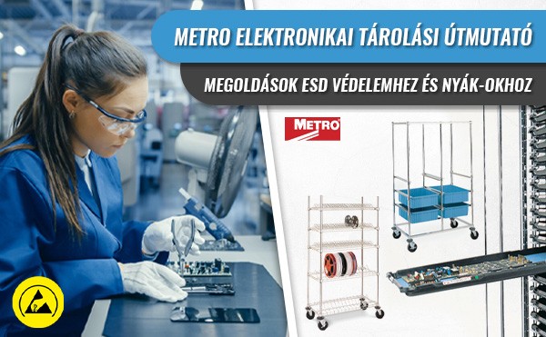 A Metro kínálatában különféle ESD-védett termékek találhatók, amelyek csökkentik az elektrosztatikus kisülés (ESD) okozta károsodás kockázatát az elektromos töltések felhalmozódásának megelőzésével a gyártás és tárolás során. Ezek az ESD-megoldások alkalmazhatók félvezetőgyártásban, nyomtatott áramköri lapok (NYÁK) gyártásában, NYÁK- és elektronikai szerelésben és kezelésben, akkumulátorgyártásban, valamint számos egyéb ipari területen.