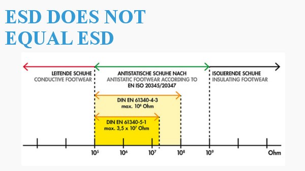 ESD shoes should be used if there is a necessity to conduct electrostatic charge away in a controlled manner through the shoes.