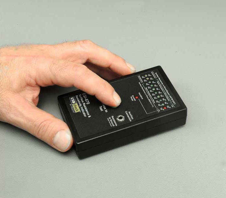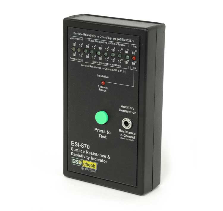 The ESI-870 Micro Kit includes an LED indicating, wide range resistance measurement instrument with broad application flexibility. It indicates surface resistance, surface resistivity and resistance to ground.