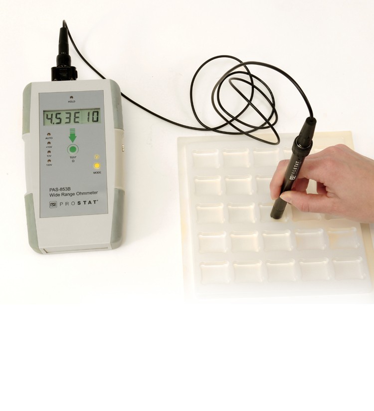 The PAS-853B performs in accordance with standard resistance measurement practices outlined in ANSI/ESD 541 Packaging and meets all audit requirements of ESD TR53.