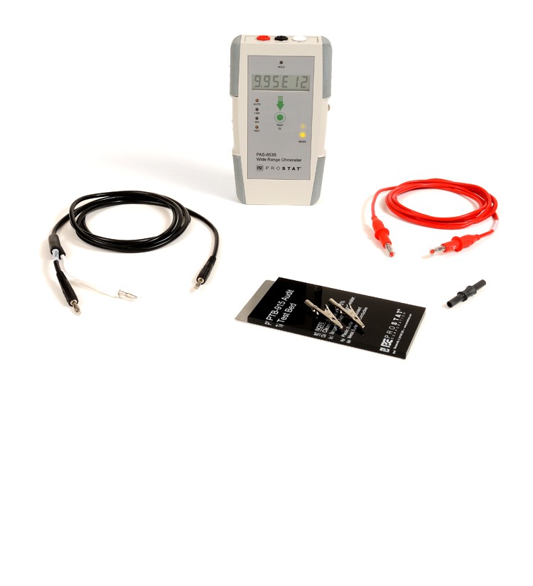 The PAS-853B is a constant voltage wide range ohmmeter designed specifically for ESD Plant Auditors who must make many measurements quickly while supporting ANSI/ESD S20.20 Program Standard and periodic verification requirements.