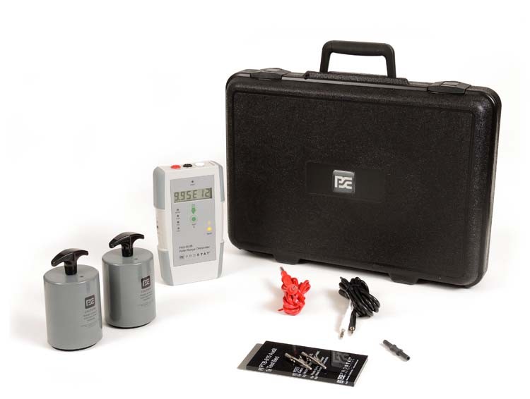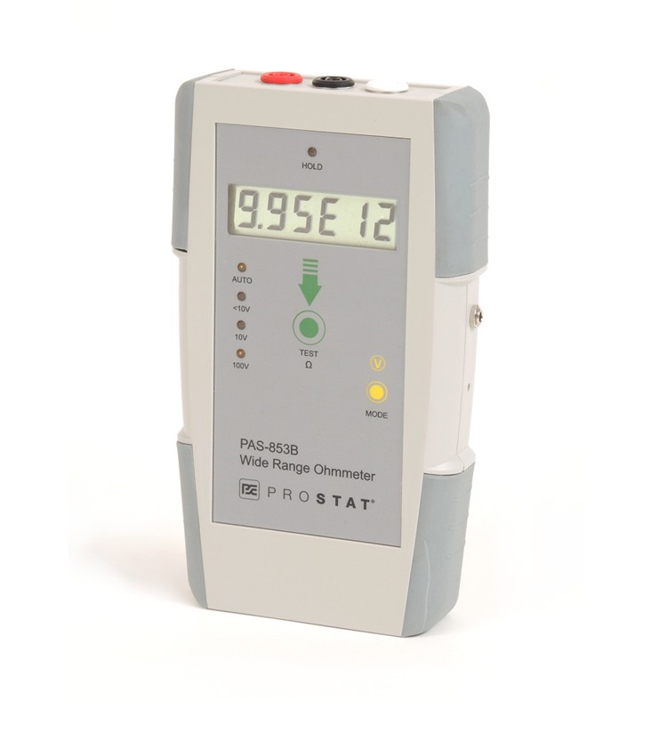 The PAS-853BRM Digital Surface Resistance Test Kit is the ideal kit for the ESD Plant Auditor. It includes the PAS-853B Wide Range Ohmmeter with 2 each 5 pound Conductive Rubber Electrodes. The PAS-853B instrument is a wide range ohmmeter that measures accurately from 0.01 to 9.99x1012 ohms. The kit is designed to measure resistance point-to-point (Rtt) or surface to ground (Rtg), and meets audit requirements of ESD TR53.