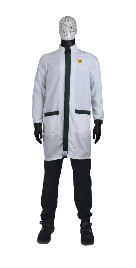 ESD prémium köpeny díjnyertes tervezői kialakítással: Vandornyik Andrea tervezése. Standard méretek: Férfi XS – 5XL. 2 oldalzseb. Rejtett patentozás. Gumis kézelő. ESD logó a mellrészen. Válaszd ki a cégetekhez illő színkombinációt! IEC 61340-4-9-2024 és ANSI/ESD STM2.1-2018 ESD szabványok szerint minősített termék.