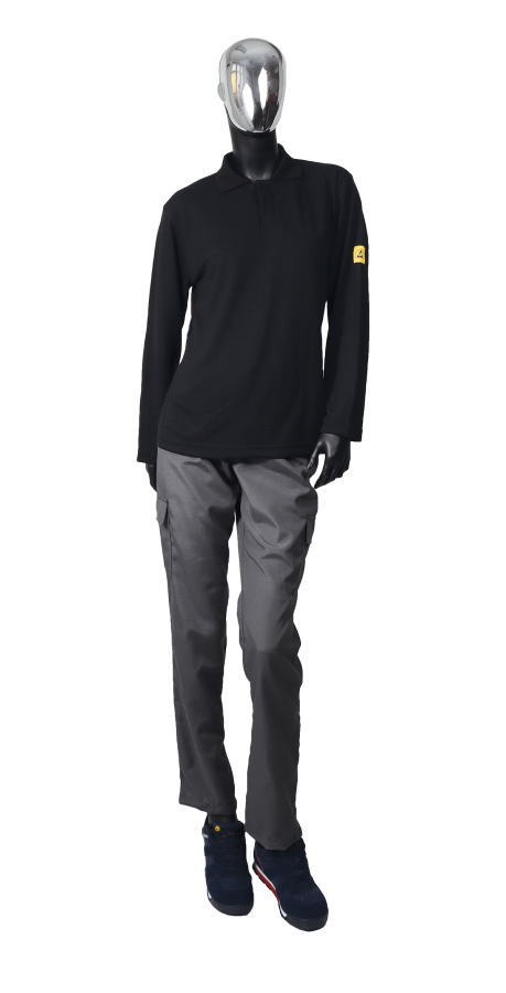 ESD T-Shirt belongs to the SUMMER collection, which is used in summer or in warm manufacturing environments for ESD clothing. Female XS - 5XL. Slim style. Without any pocket. ESD logo on sleeve. Hidden snap-fasteners. Wide ESD fabrics and colors available. IEC 61340-4-9-2024 and ANSI/ESD STM2.1-2018 ESD certified products.