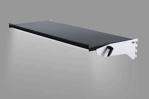 Straight steel shelf is mounted on a perforated frame by means of special brackets. The design enables for installation at an angle of 90o or 60o relative to a perforated vertical frame. Provides additional lighting of a workplace or a specific area.