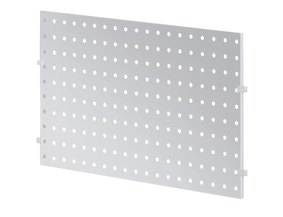 Perforated panels are fastened onto the upright frame using four easily-mounted holders. When equipped with suitable hooks, they constitute a practical storage place for various tools and equipment. Panels are available in two dimensions.