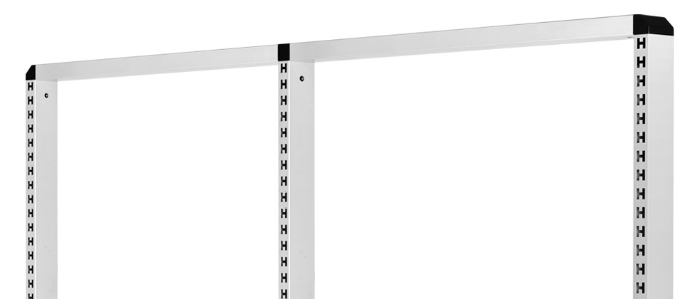 Perforated vertical frame is one of the basic elements. Accessories such as shelves, suspension rails with plastic containers, perforated panels are mounted on the frame. Perforation allows the placement of accessories at any height. The frame is available in three standard widths.