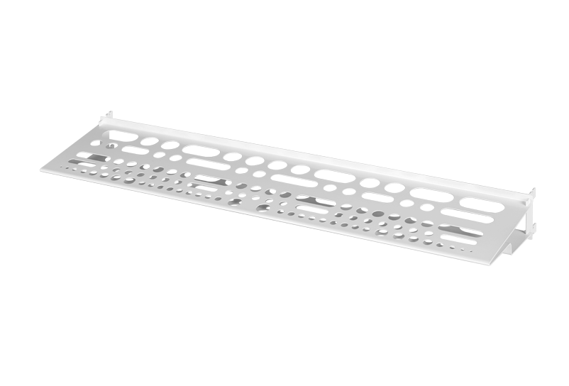 Shelf was equipped with different size holes, which enable storage of differently sized tools. Another advantage is the constant angle of shelf inclination, provides user with easy access.