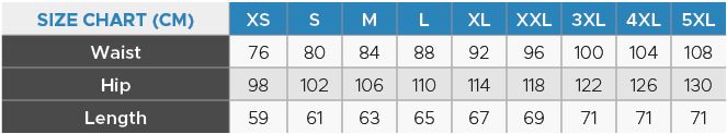 - Standard sizes: Male XS - 5XL
