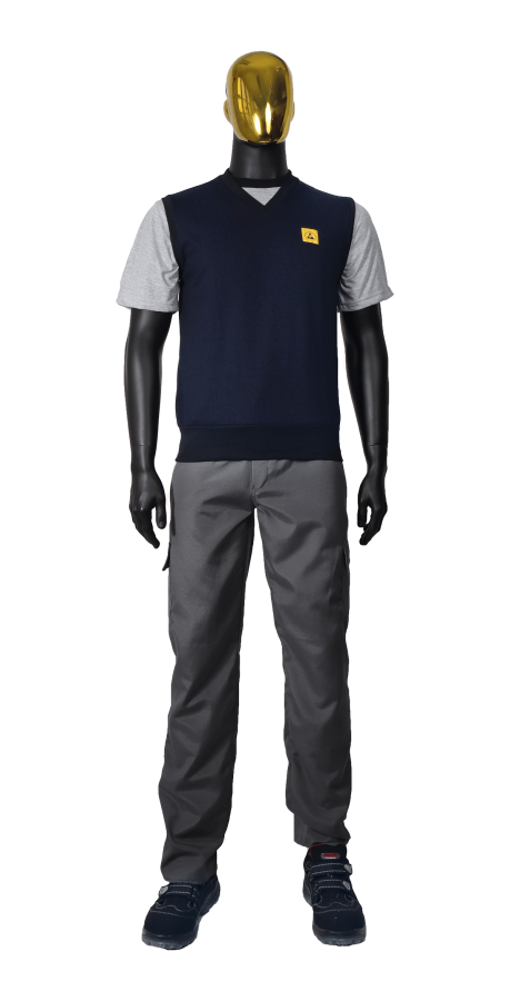 ESD vest belongs to the WINTER collection, which is used in winter or in cold manufacturing environments for ESD clothing. Standard sizes: Unisex XS - 5XL V-neck ESD logo on the chest area More ESD fabrics and colors available. IEC 61340-4-9-2024 and ANSI/ESD STM2.1-2018 ESD certified products.