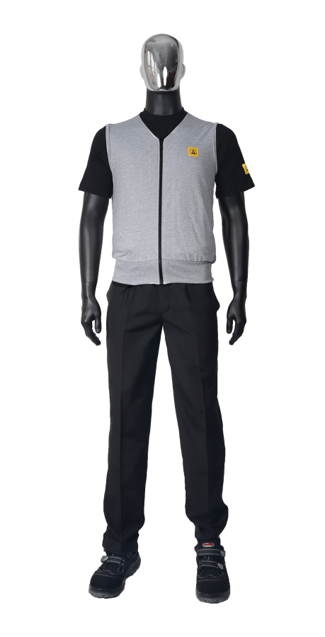 ESD vest belongs to the WINTER collection, which is used in winter or in cold manufacturing environments for ESD clothing. Standard sizes: Unisex XS - 5XL V-neck. With full length zipper. ESD logo on the chest area. More ESD fabrics and colors available. IEC 61340-4-9-2024 and ANSI/ESD STM2.1-2018 ESD certified products.