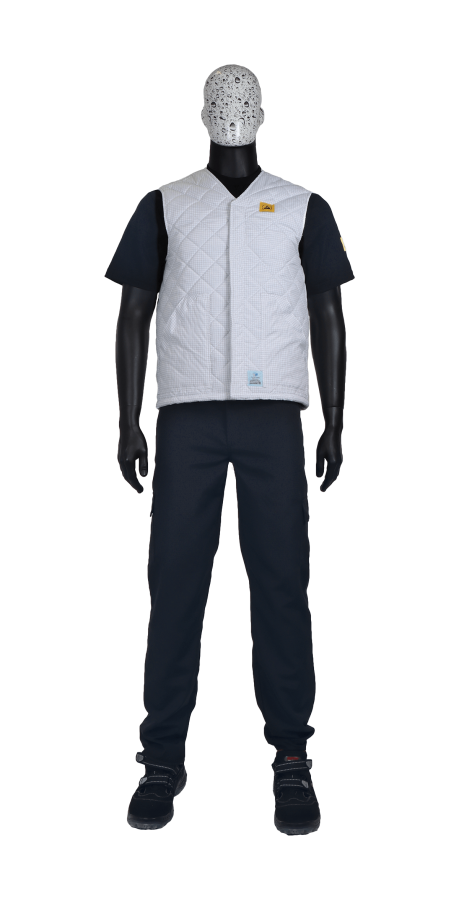 ESD Quilted vest belongs to the WINTER collection, which is used in winter or in cold manufacturing environments for ESD clothing. Standard sizes: Unisex XS - 5XL. Quilted lining. Hidden snap-fasteners. ESD logo on the chest area. 2 side pockets. Not waterproof. IEC 61340-4-9-2024 and ANSI/ESD STM2.1-2018 ESD certified products.