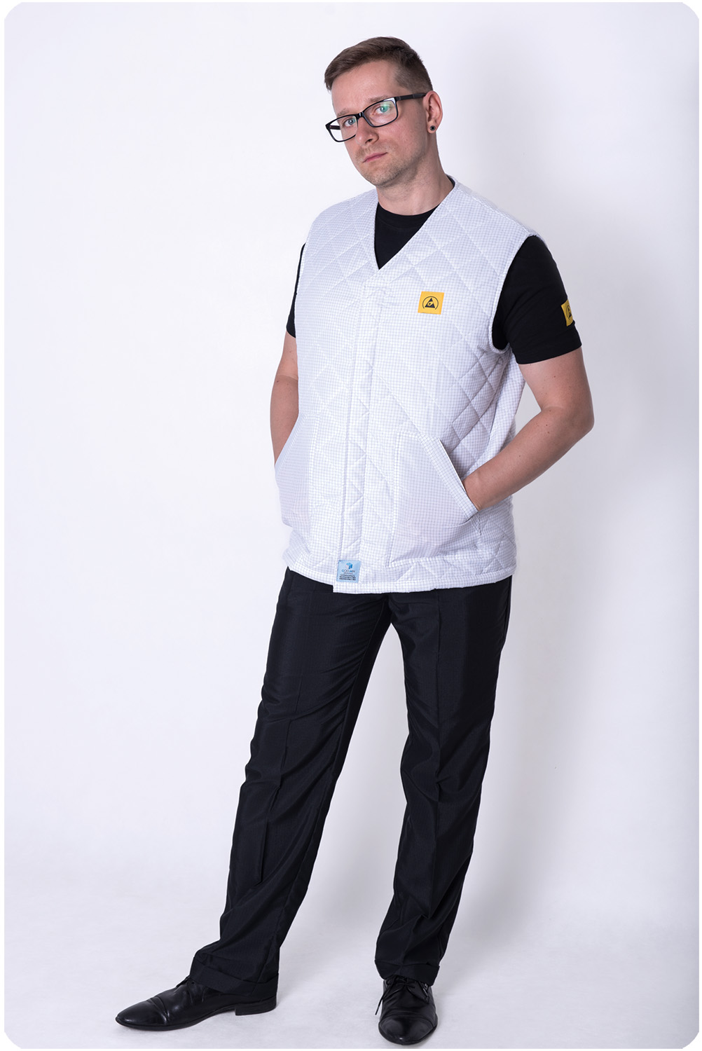 ESD steppelt mellény a WINTER téli kollekcióhoz tartozik, melyet téli időszakban vagy hideg gyártási környezetben használatos ESD ruházat. Standard méretek: Unisex XS – 5XL Bélelt steppelt mellény Rejtett patentozással ESD logó a mellrészen 2 oldalzsebbel Nem vízálló. IEC 61340-4-9-2024 és ANSI/ESD STM2.1-2018 ESD szabványok szerint minősített termék.