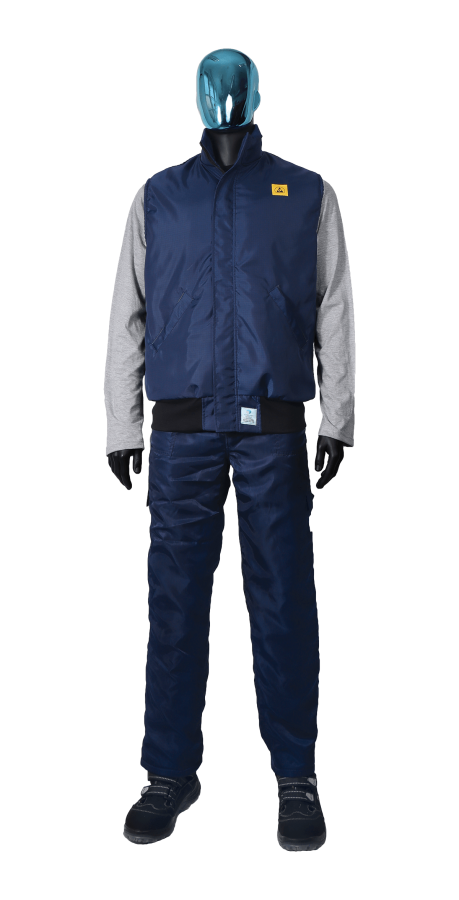 ESD winter vest belongs to the WINTER collection, which is used in winter or in cold manufacturing environments for ESD clothing. Standard sizes: Unisex XS - 5XL Fleece lining Water-repellent outer layer ESD logo on the chest area 2 side pockets Hidden zipper. IEC 61340-4-9-2024 and ANSI/ESD STM2.1-2018 ESD certified products.